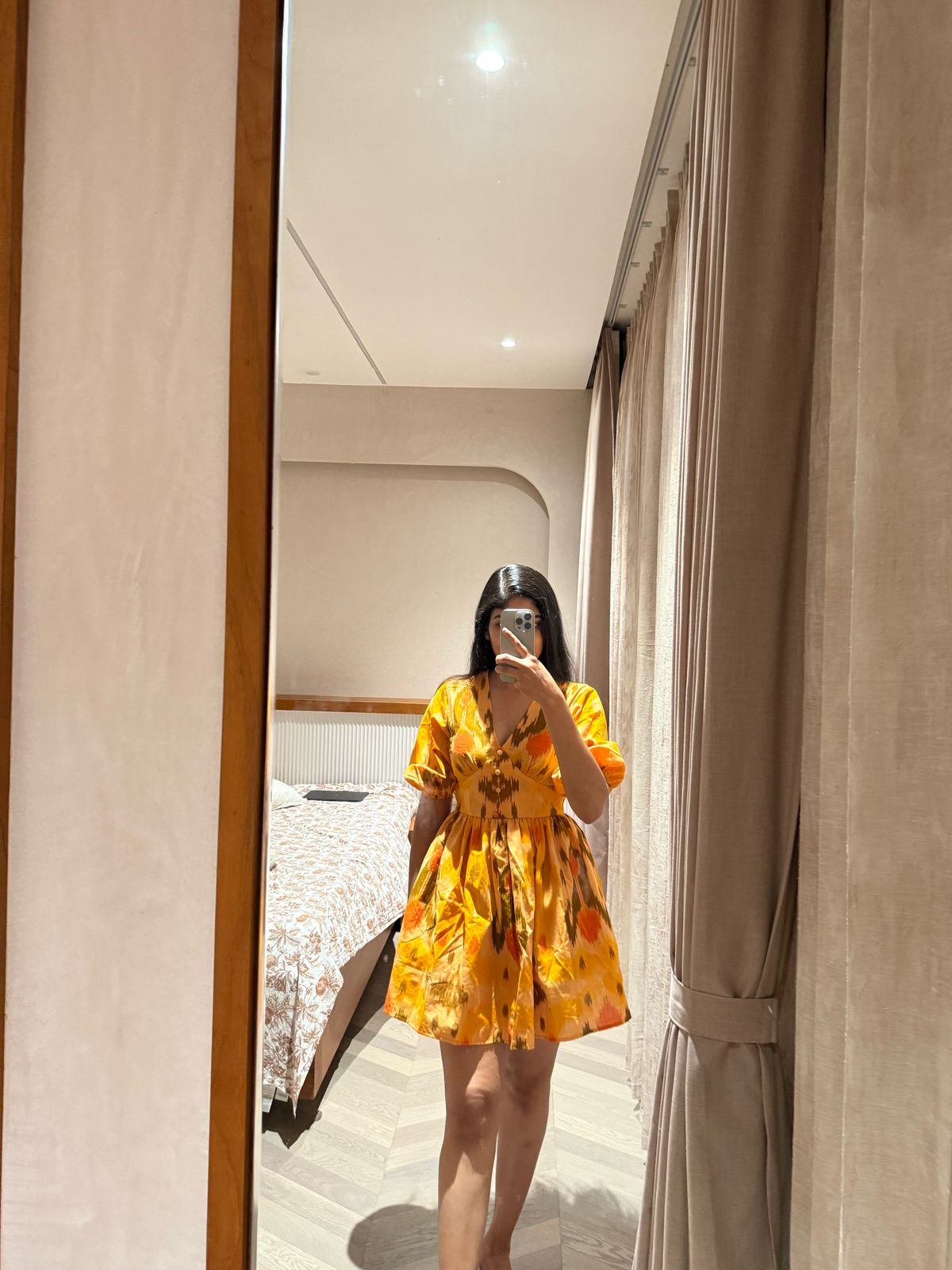 A handwoven ikat mini that celebrates the joy of craft — bold and playful, with voluminous sleeves and button detail bodice. Each weave takes over 180 days, making this sunshine silhouette truly special.